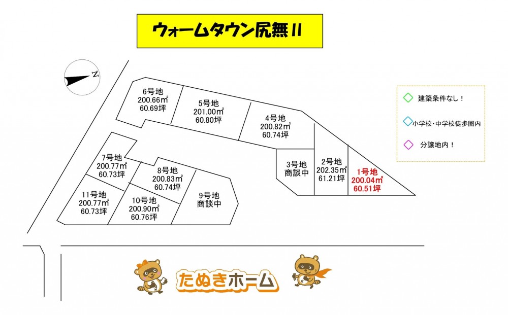 ウォームタウン尻無Ⅱ 全11区画♪ 建築条件なしお好きなハウスメーカー・工務店建築可能♪
